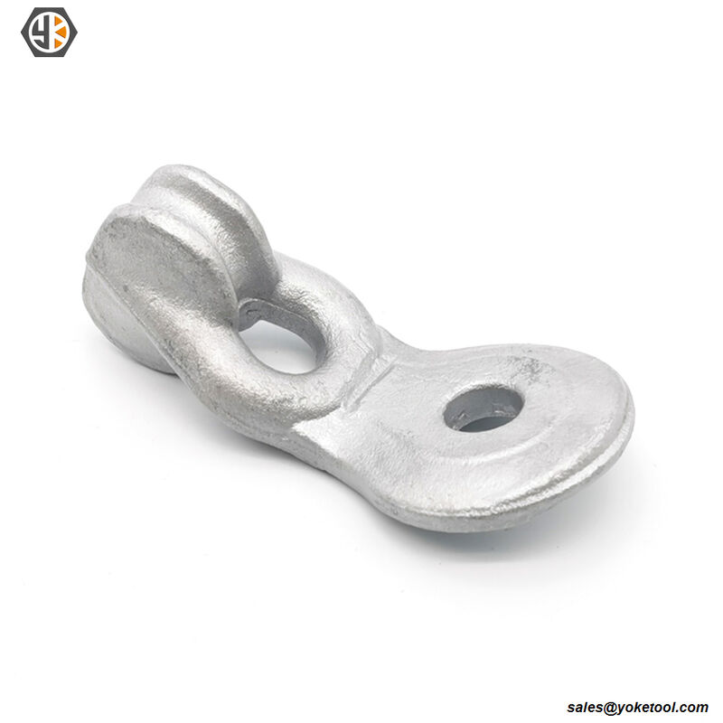 The Yokelink Drop Forged Angle Thimble Eyelet is specifically engineered for down-guy applications on utility poles. By providing a natural 45-degree departure angle, this eyelet ensures that the steel guy wire travels smoothly from the pole down to the earth anchor without suffering from sharp, destructive bends at the attachment point.